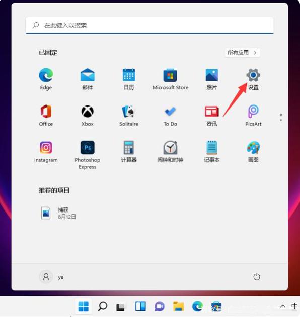 1、win11正式版怎么調用藍牙,首先點擊設置。