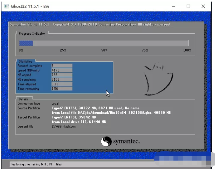 8、系統備份完成后,將會再次重啟,自動進入系統安裝界面,這時等待系統安裝完成就大功告成了。