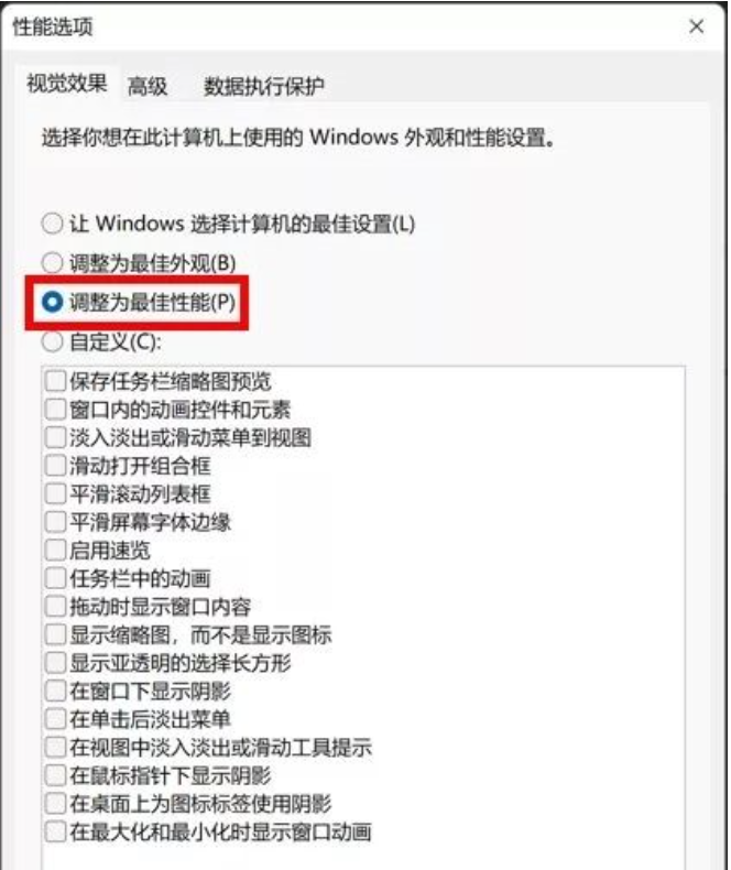 ③點擊【調整Windows的外觀和性能】【調整為最佳性能】。