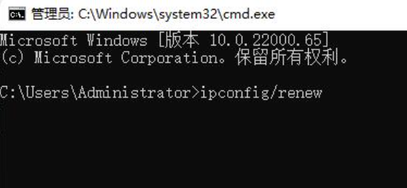4、清除完成后再輸入“ipconfig/renew”回車確定來重新獲取ip即可。