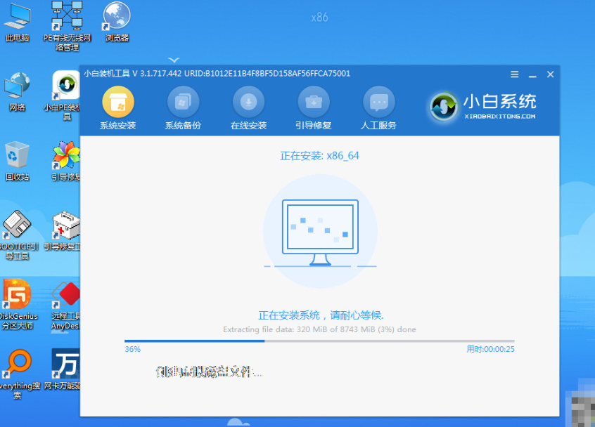 7、進入pe系統后,小白裝機工具開啟并安裝win11系統,結束后再次重啟電腦。