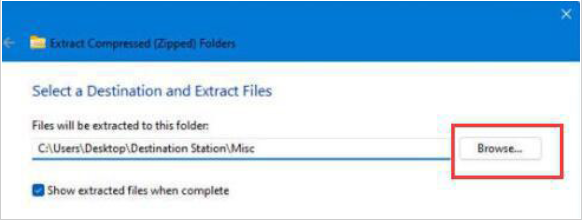3、然后在其中點擊瀏覽就可以選擇需要解壓到的位置。