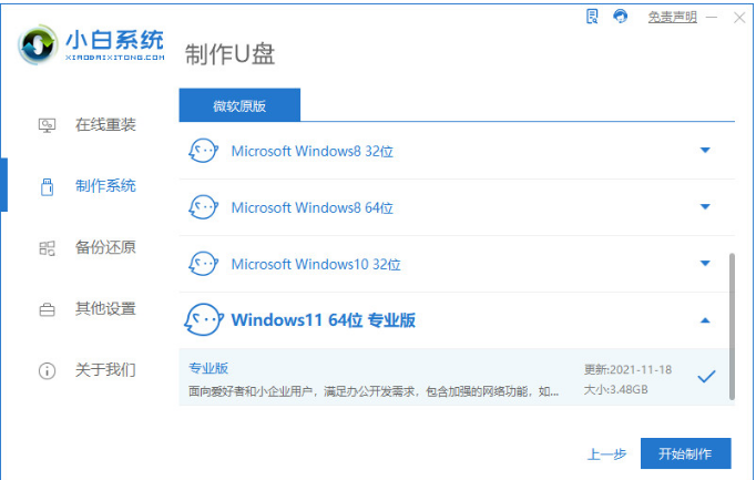 2.接下來,鼠標點擊制作系統的U盤選項,鼠標點擊開始制作。