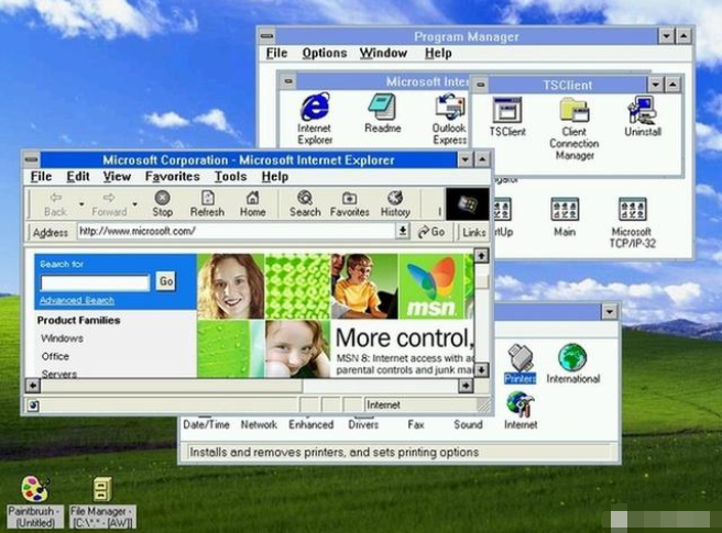 從3.1系統開始加入了16位色,圖標得到改進,經典時間消遣游戲三件套紙牌,紅心大戰以及掃雷出現在了Windows 3.0中。3.0版本標志著現代Windows開始成型。Windows 3.0是微軟第一個真正在世界上獲得巨大成功的圖形用戶界面版本。圖形用戶界面非常類似于蘋果的Mac OS圖形用戶界面,算是真正意義的第一代Windows系統。Win3.1已經有IE,有墻紙,有Microsoft mail電子郵件工具。Win3.1是1990年發布的,已經有多媒體概念。