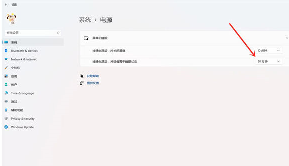 3、進入電源界面,即可設置屏幕關閉時間和睡眠時間。