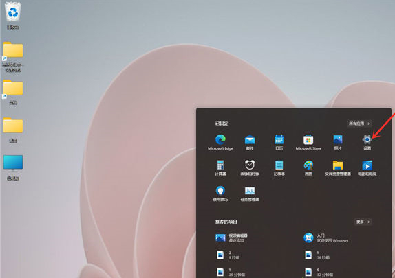 1、win11電腦休眠怎么設置,點擊【開始菜單】,點擊【設置】。
