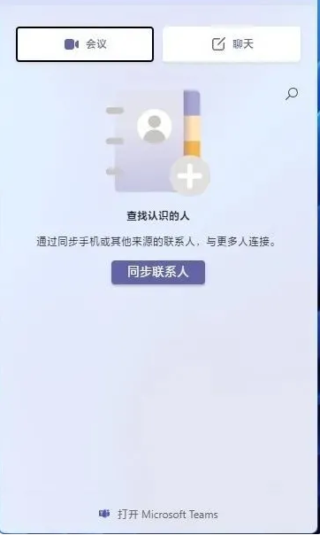 Microsoft Teams這個同樣也是Win11中新增加的組件,發布會上微軟曾用它用戶演示即時通訊。Win+C是這款組件的快捷鍵,不管任務欄上是否顯示,都可以用它一鍵調出Microsoft Teams。值得一提的就是,在Win10系統中Win+C曾經是Cortana(小娜)的快捷鍵。這一次Win11直接將其取消,或許也與Cortana一直表現不佳有關系關。