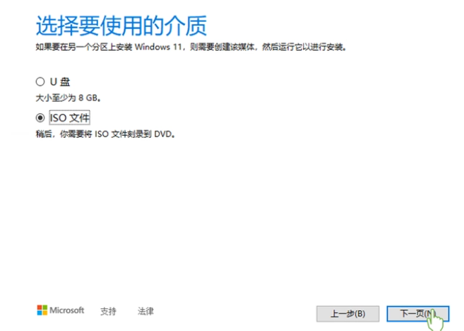 6.選擇我們使用的介質,U盤適用于將U盤設置為啟動盤的安裝方式,不是我們本篇文章要的。所以,選擇【ISO文件】,點擊【下一步】。