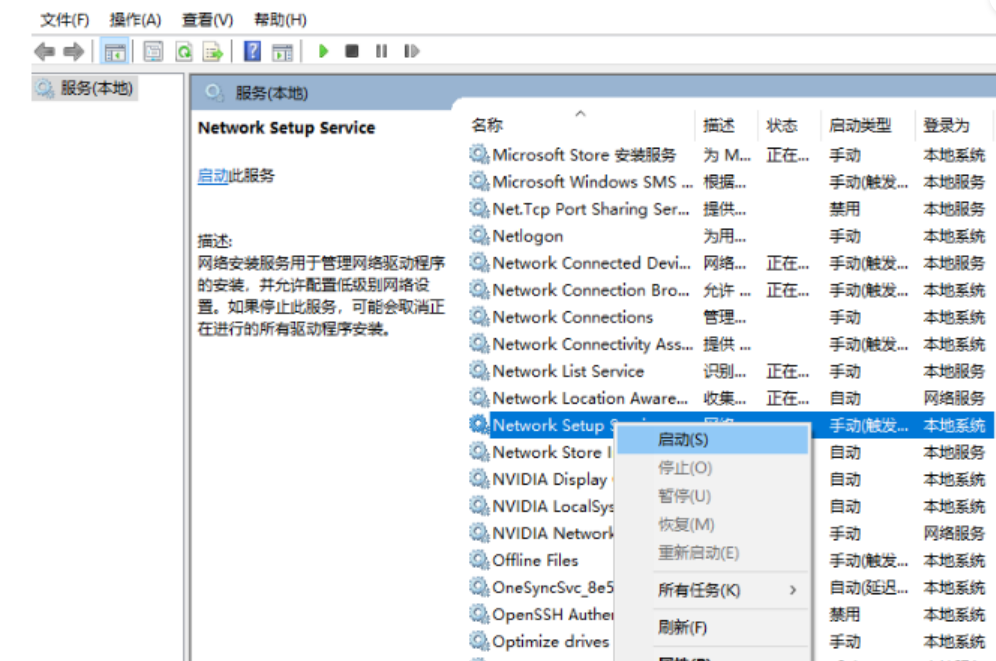 5、最后再次右擊Network Setup Service選擇啟動。