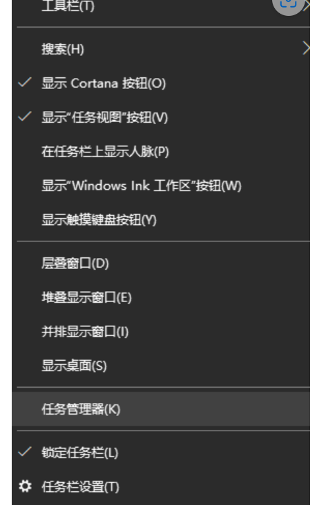 1、在電腦底部菜單欄鼠標右擊下方的通知欄選擇任務管理器。