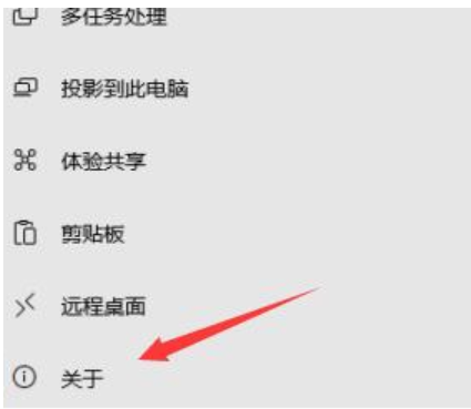 2、點擊左側欄目的【關于】。