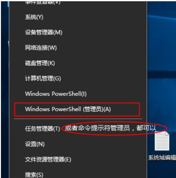 1、鼠標右擊左下角開始菜單按鈕,出現的列表選擇“windows powershell(管理員)”。
