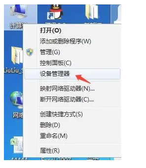 4.回到桌面,右鍵點擊【計算機】選擇【設備管理器】選項打開。