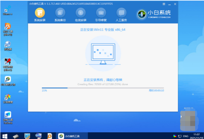 6、電腦進入pe系統之后打開小白裝機工具,選擇win11系統開始安裝到系統c盤。