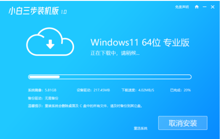 軟件版本:小白三步裝機版1.0