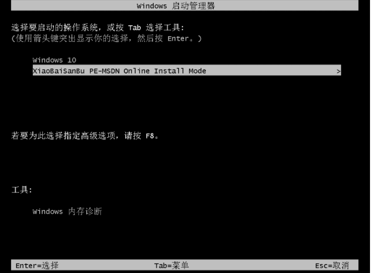 4、電腦進入啟動項選擇界面,我們選擇小白PE系統按回車進入。