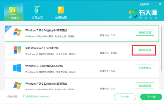 1、下載石大師工具,選擇win11系統下載;