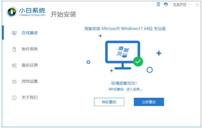 3、當提示部署環境完成后,點擊立即重啟電腦。