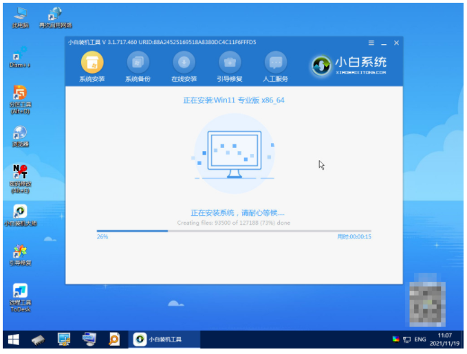 5、進入pe系統后,裝機工具此時將會自動開啟安裝win11系統,完成后自動重啟。