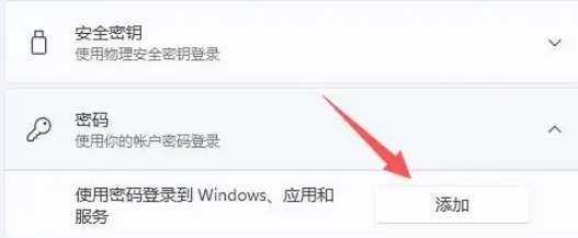 2、點擊“密碼”,點擊“添加”,輸入密碼,點擊“下一步”即可完成修改。。