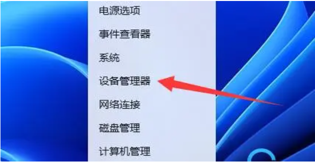1、重啟后進入系統,右鍵開始菜單,打開“設備管理器”。