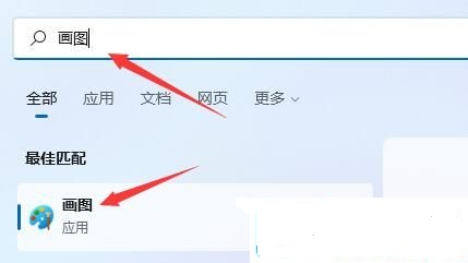2、在上方搜索框中輸入“畫圖”即可在下方打開畫圖工具。