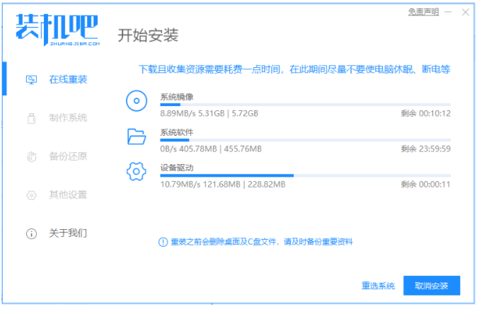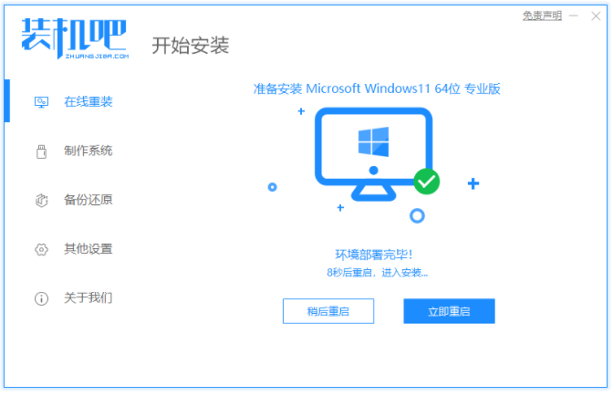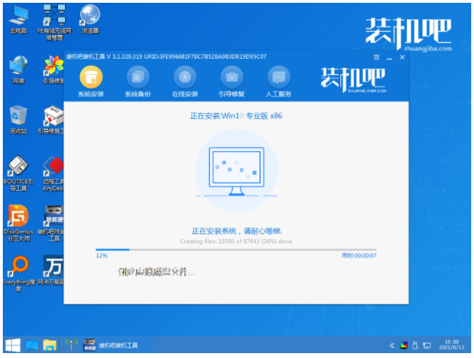5、進入pe系統之后,裝機吧裝機工具將會開始自動開啟安裝win11系統,完成后電腦自動重啟。