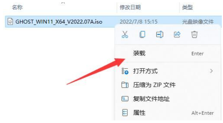 1、如果我們是因為配置檢測不通過想要強制升win11的,需要先下載win11直裝系統,右鍵“裝載”它。