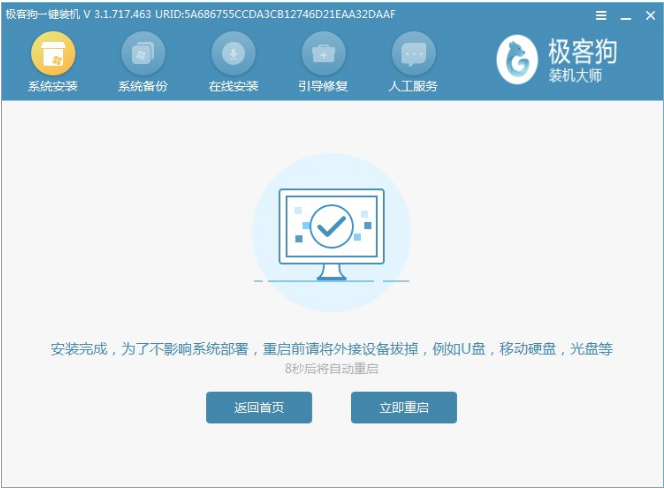 3、繼續耐心等待部署完成,部署完成點擊立即重啟。