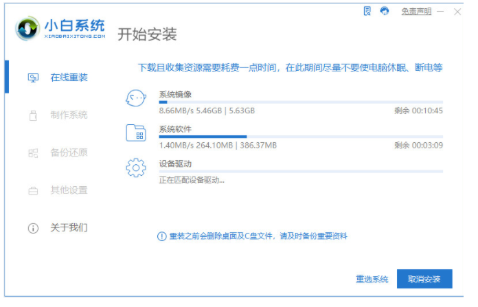2、裝機軟件自行開始下載鏡像后重啟進入pe系統;