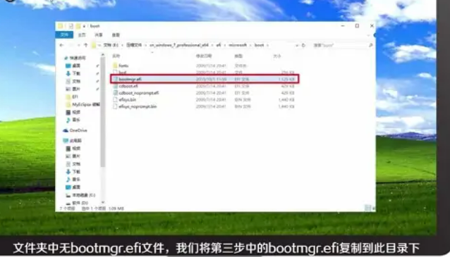 文件夾中無bootmgr.efi文件,我們將步驟二中的bootmgr.efi復制到此目錄下,將名字改為bootx64.efi。