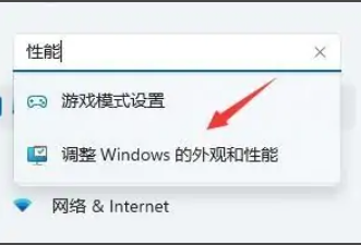 2、在左上角的搜索框中輸入“性能”,并點擊打開“調整windows的外觀和性能”。