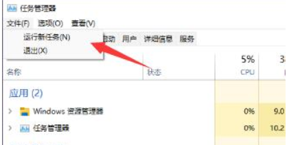 4、打開任務管理器后,點擊左上角“文件”,選擇“運行新任務”。