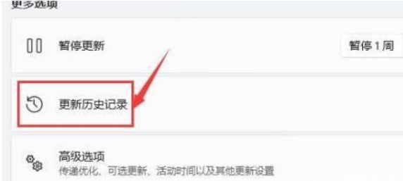 6、然后在安全模式中打開系統的windows更新界面,選擇“更新歷史記錄”。