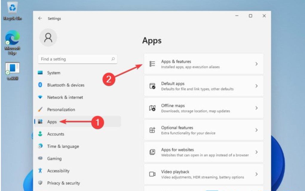 2、設置窗口,左側鼠標點擊Apps(應用),右側鼠標點擊Apps & features(應用程序和功能)。