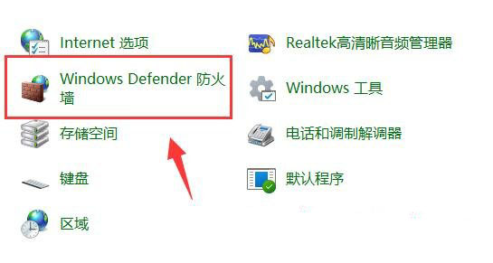 3、接著,找到并點擊打開Windows Defender 防火墻。