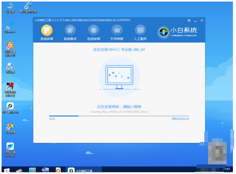 5、在pe系統界面內打開小白裝機工具,選擇win11系統開始安裝到系統c盤即可。
