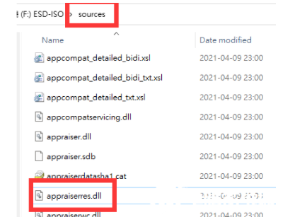 3、將install.wim文件以及appraiserres.dl拷貝進該source文件夾中。