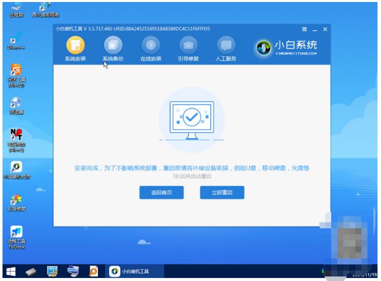 6、提示系統安裝完成后,選擇立即重啟電腦。