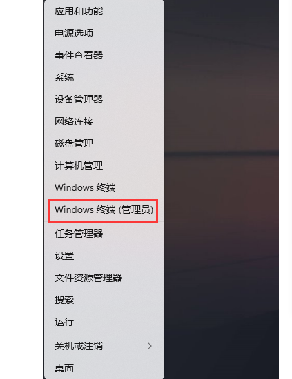 步驟一:首先,按鍵盤上的 Win + X 組合鍵,或右鍵點擊任務欄底部的Windows開始圖標,然后在打開的隱藏菜單項中,選擇Windows 終端 (管理員)。