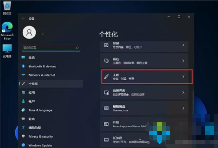 2、進入到個性化的菜單中,選擇【主題】功能;