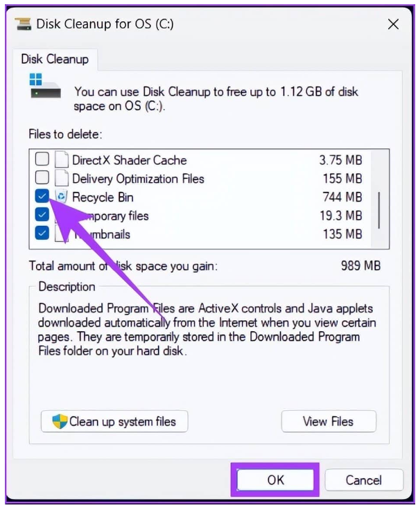 3、單擊清理系統文件,選擇必要的文件夾,然后確定。