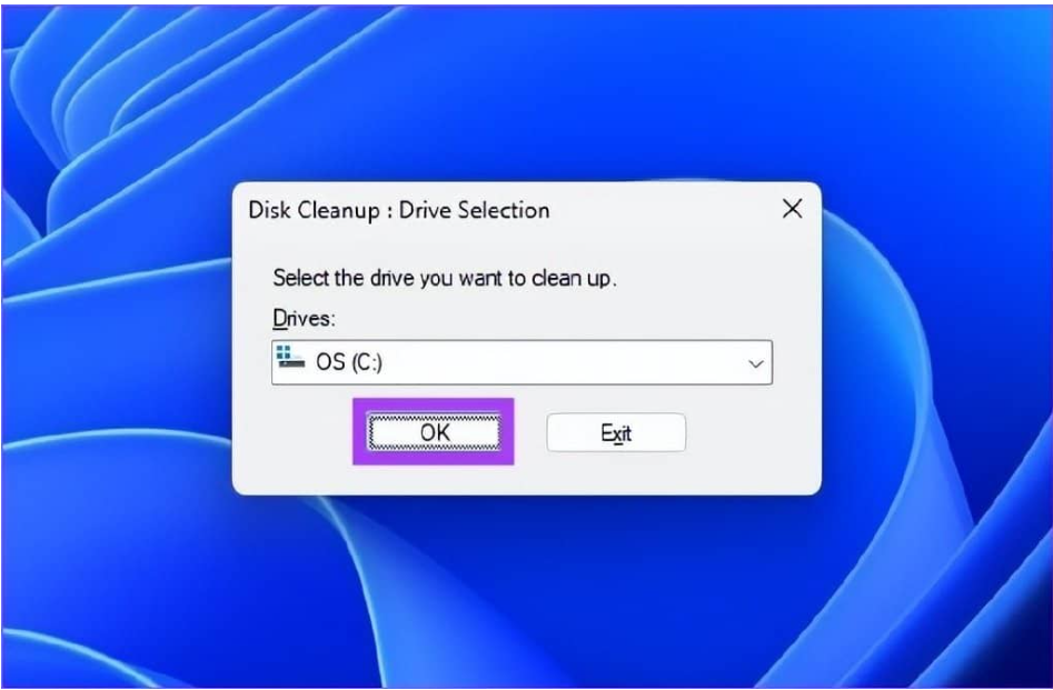 2、在提示要選擇清理的驅動中選擇安裝windows操作系統C盤驅動器,單擊確定。