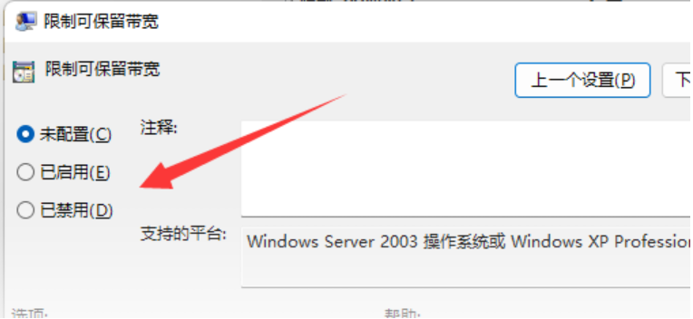 3、然后點擊右側的“限制可保留帶寬”進入其窗口,最后勾選“已啟用”并將帶寬限制設置為“0”即可。