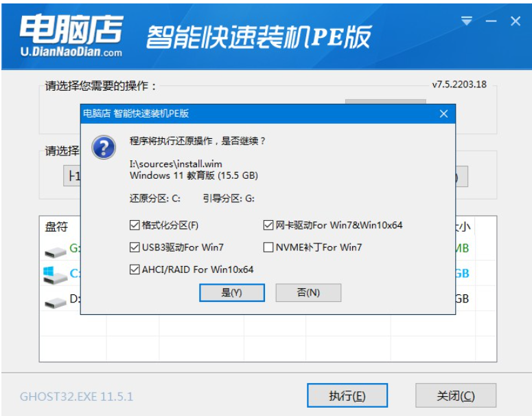 8、在一鍵還原窗口中,建議默認勾選,點擊【是】即可。
