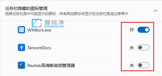 步驟三:然后進入“任務欄隱藏的圖標管理”并開啟電源圖標即可。