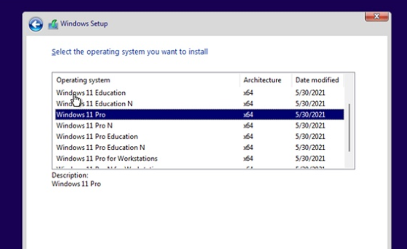 4、等待安裝程序運行完成,會彈出如下界面,在其中選擇“windows11 Pro”