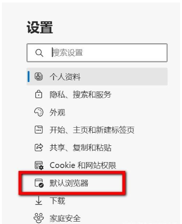 2、設置界面中,選擇【默認瀏覽器】選項;