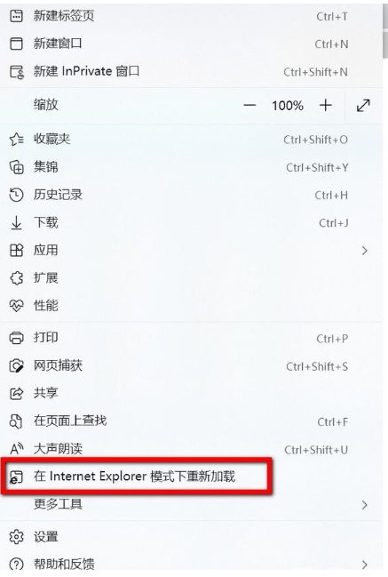 5、再次打開需要兼容顯示的頁面,點擊【…】,然后點擊【在Internet Explorer模式下重新加載】,頁面自動重新加載;