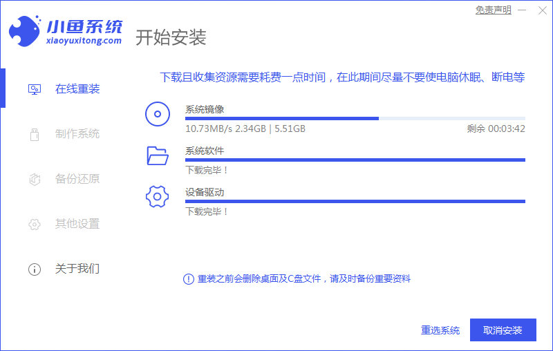 2、等待軟件下載收集系統鏡像、軟件、設備驅動等資源。